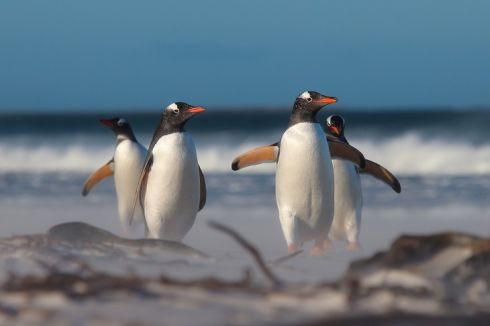 Pinguinii Gentoo numara in toatal aproximativ 387.000 de perechi. Traieste in colonii si este fidel. Poate realiza scufundari pana la 100 m adancime. Pinguinul Gentoo este cel mai timid dintre pinguini.