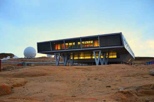 Clădirea principală oferă alimentare cu energie, de încălzire automată și aer condiționat cu apă caldă și rece, toalete, saună, depozitare la rece, sistem PA, sufragerie, camera de zi și spațiu de laborator. Comunicarea se face prin canale de satelit dedicate oferind conectivitate prin voce, video și date cu India continentală.